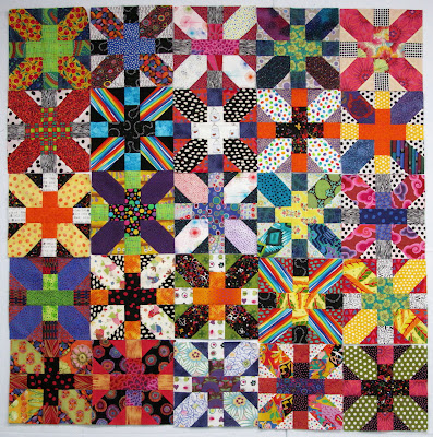 This is the top left corner plus center strip on some new X and + blocks. I did a lot of cutting yesterday, mostly from my dotted scraps left over from the quilt I called 168 Dots. I also pulled out more to cut today.